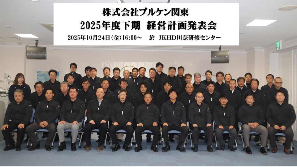 令和7年度 下期経営計画発表会 2025年11月14日 最終更新日時 : 2025年11月14日 bullkenkanto 2025年10月24日(金)、JKHD川奈研修センターにおいて、役職員総勢45名が参加し、 「2025年下期経営計画発表会」を研修会と発表会の二部構成で執り行いました。